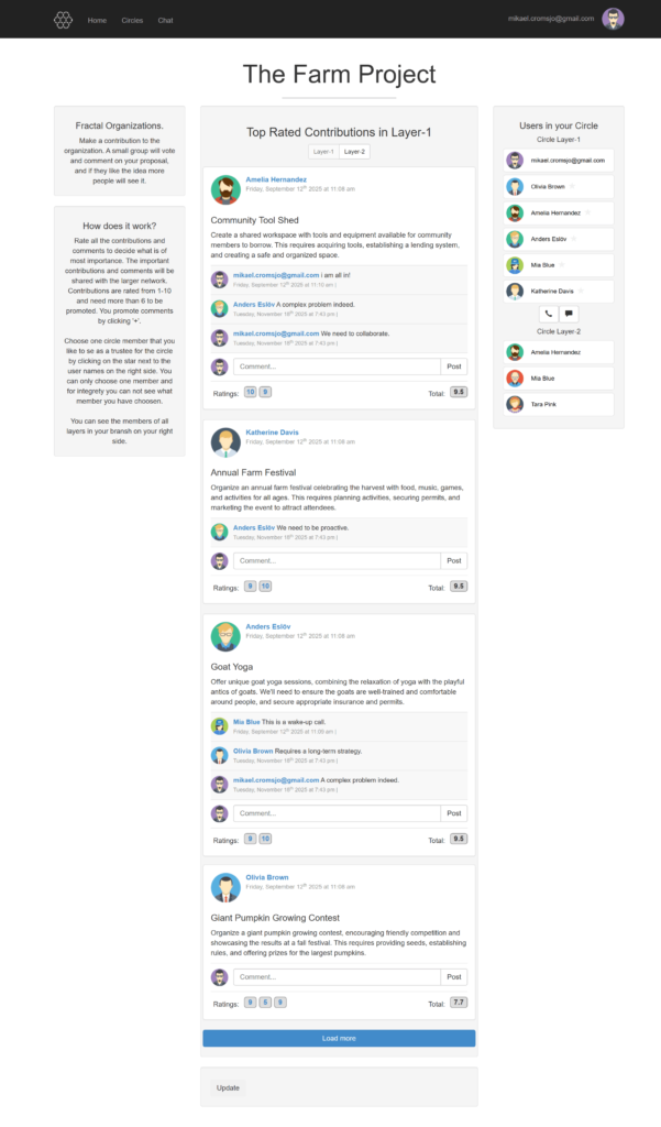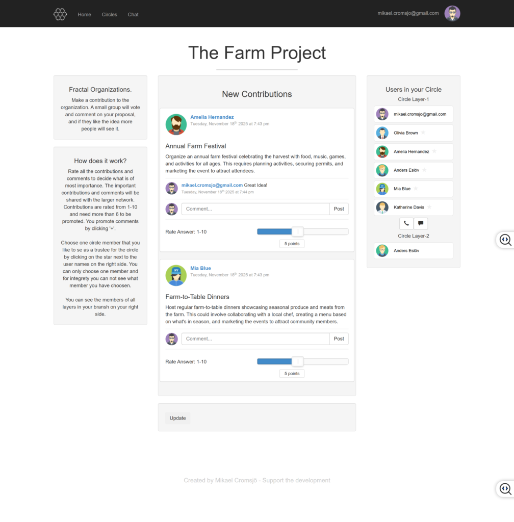 Inom en cirkel kan medlemmar föreslå åtgärder eller dela kommentarer. Andra medlemmar då hastighet eller rösta på dessa bidrag. Systemet spårar betyg och röster för att mäta konsensus. När en åtgärd eller kommentar får en viss nivå av stöd – mätt med positiva röster eller betyg – kan det vara främjas till en högre cirkel för vidare granskning eller implementering.